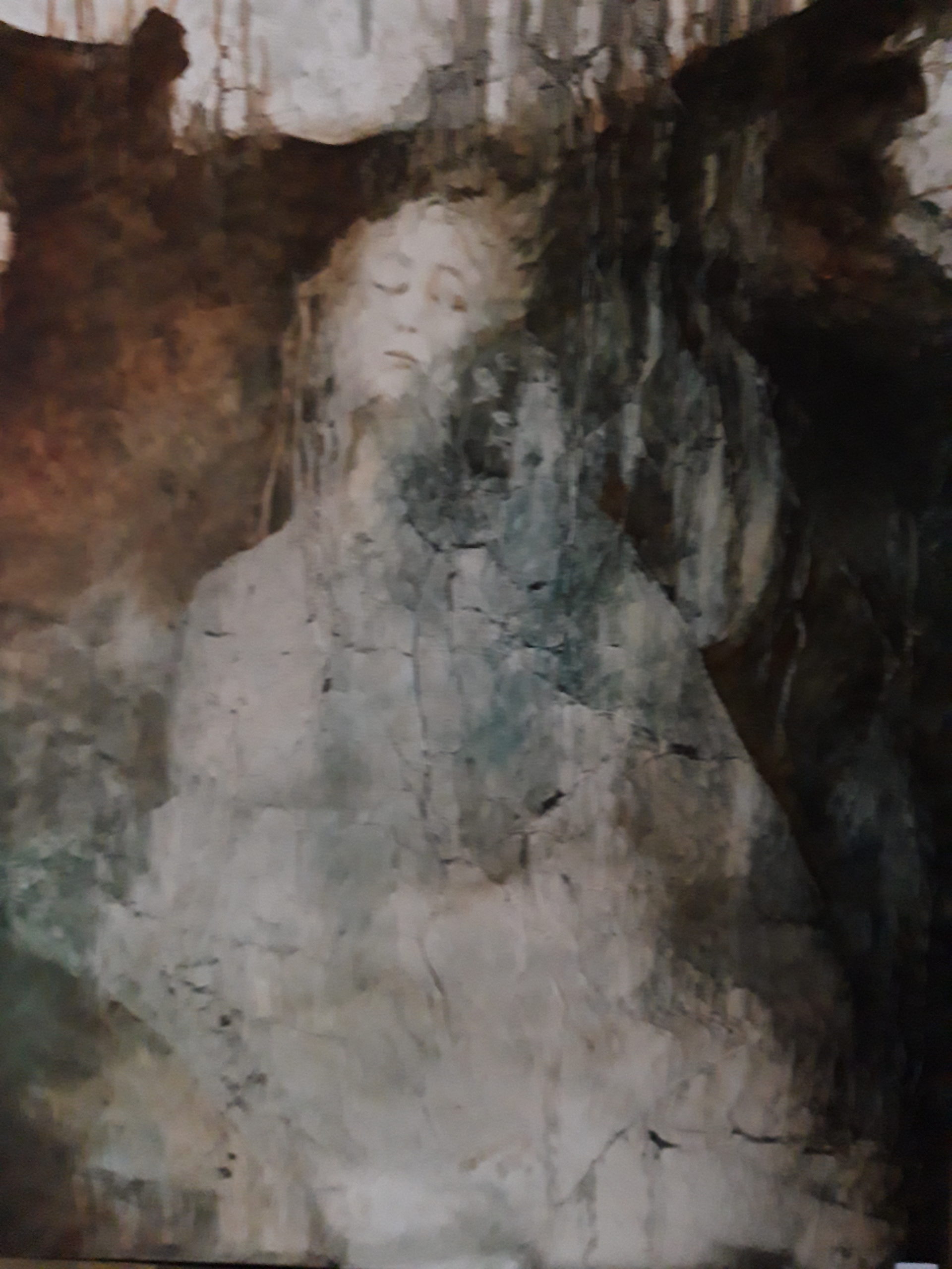 D’après « Miroir des âmes simples et anéanties » de Marguerite Porete, (Valenciennes (?) fin XIII°, morte brûlée vive à Paris en 1310 pour l’écriture de ce livre, dans la lignée des grands mystiques Maître Eckart et Hadewijge d’Anvers. Miroir ou reflets des âmes mises au néant ou abîmées par l’Amour.